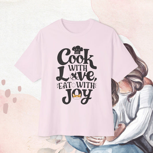 Cook With Love Eat With Joy Unisex Oversized Boxy Tee