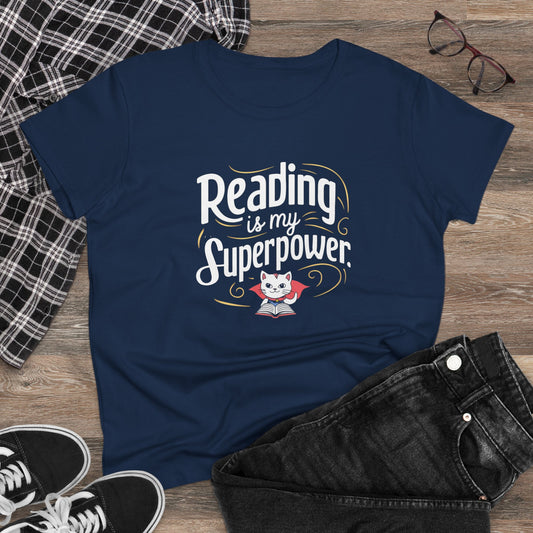 Reading Is My Superpower Book Lover Women Cotton T-Shirt