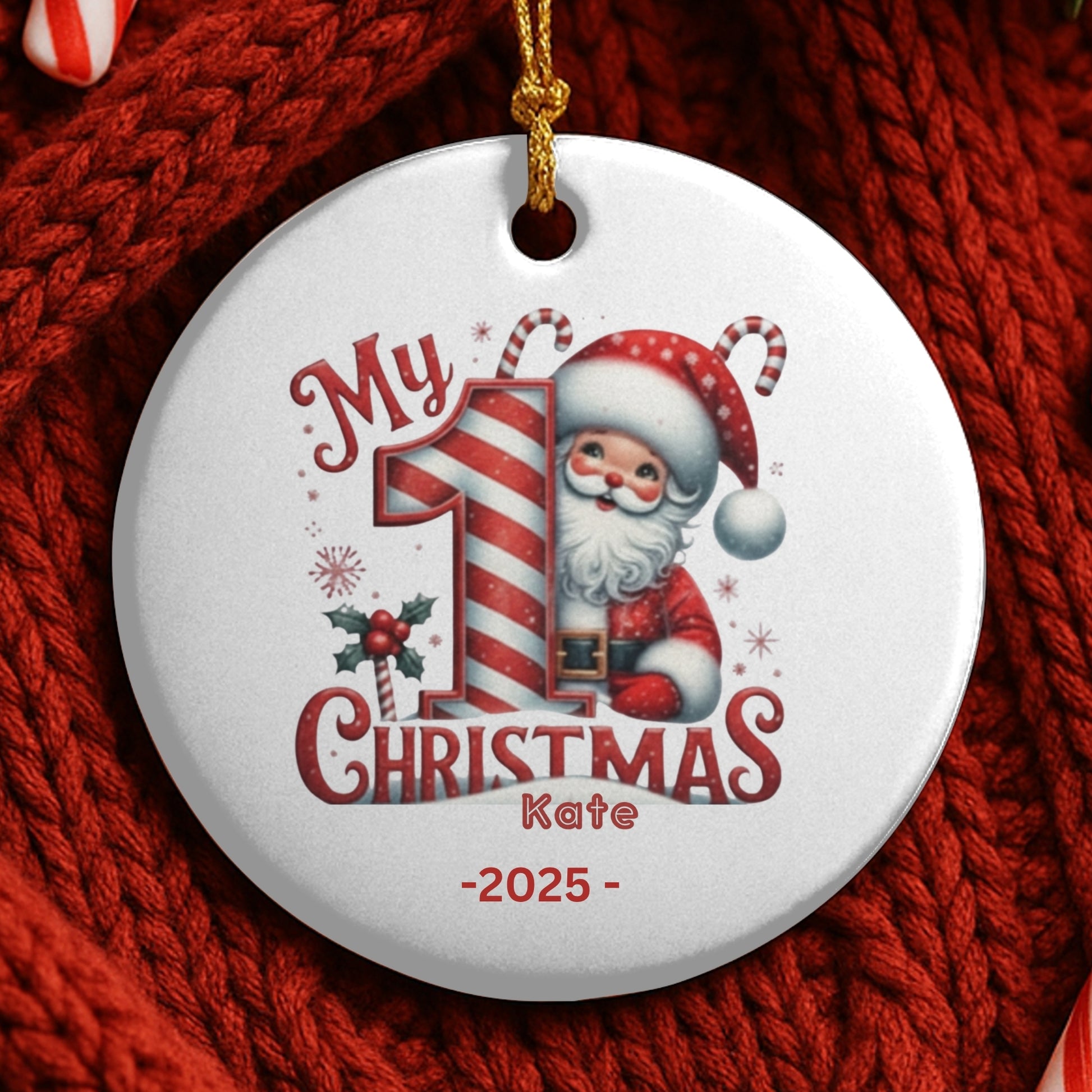 Baby's First Christmas Decoration| Personalised Baby's 1st Christmas Scene Decoration | Keepsake Christmas Santa Gift Ceramic Ornament
