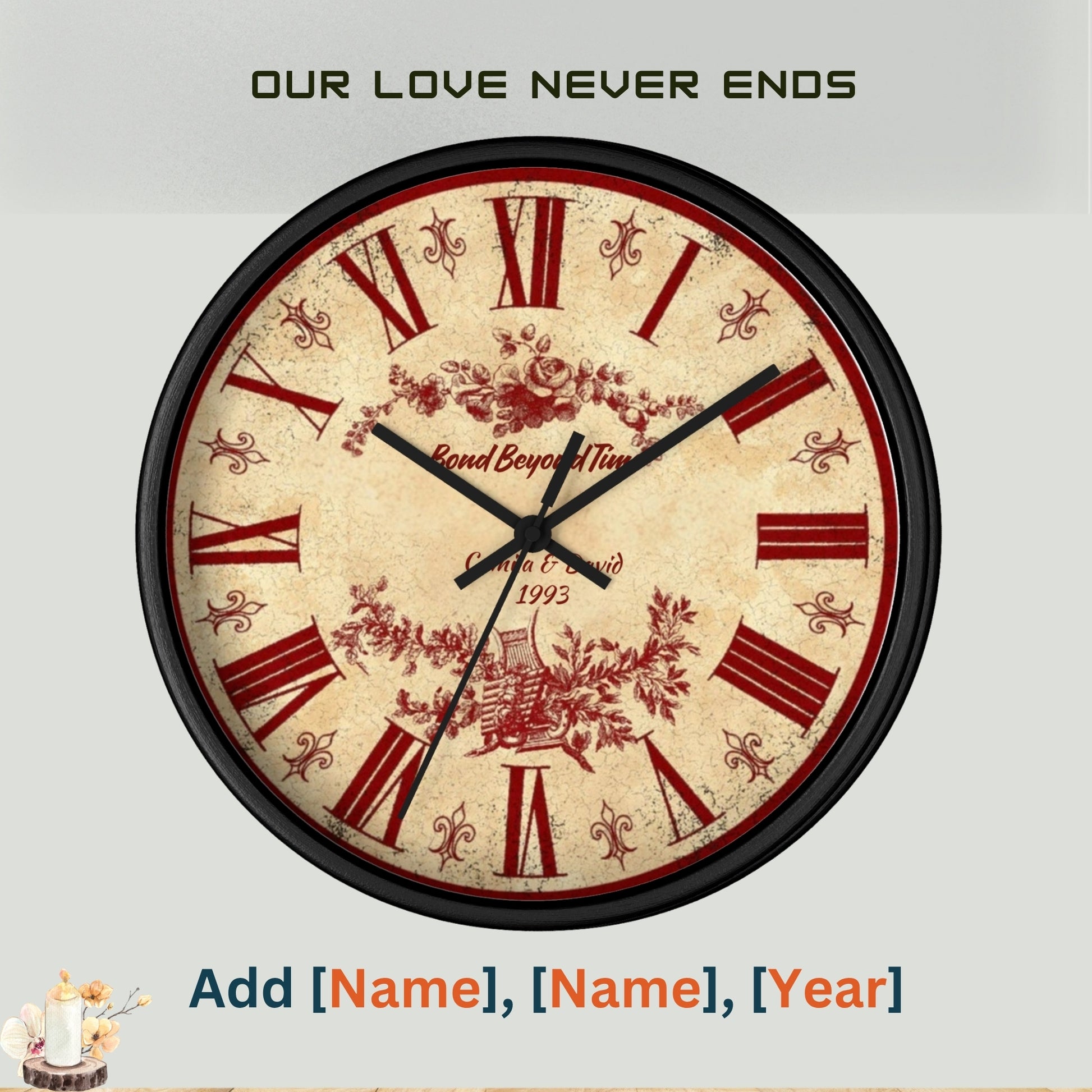 Add timeless charm with our Personalized Vintage Wall Clock, custom engraved with name & year and a beautiful floral design. Featuring classic Roman numerals, this elegant wooden clock makes a meaningful anniversary gift, wedding keepsake, or unique home dรฉcor piece.