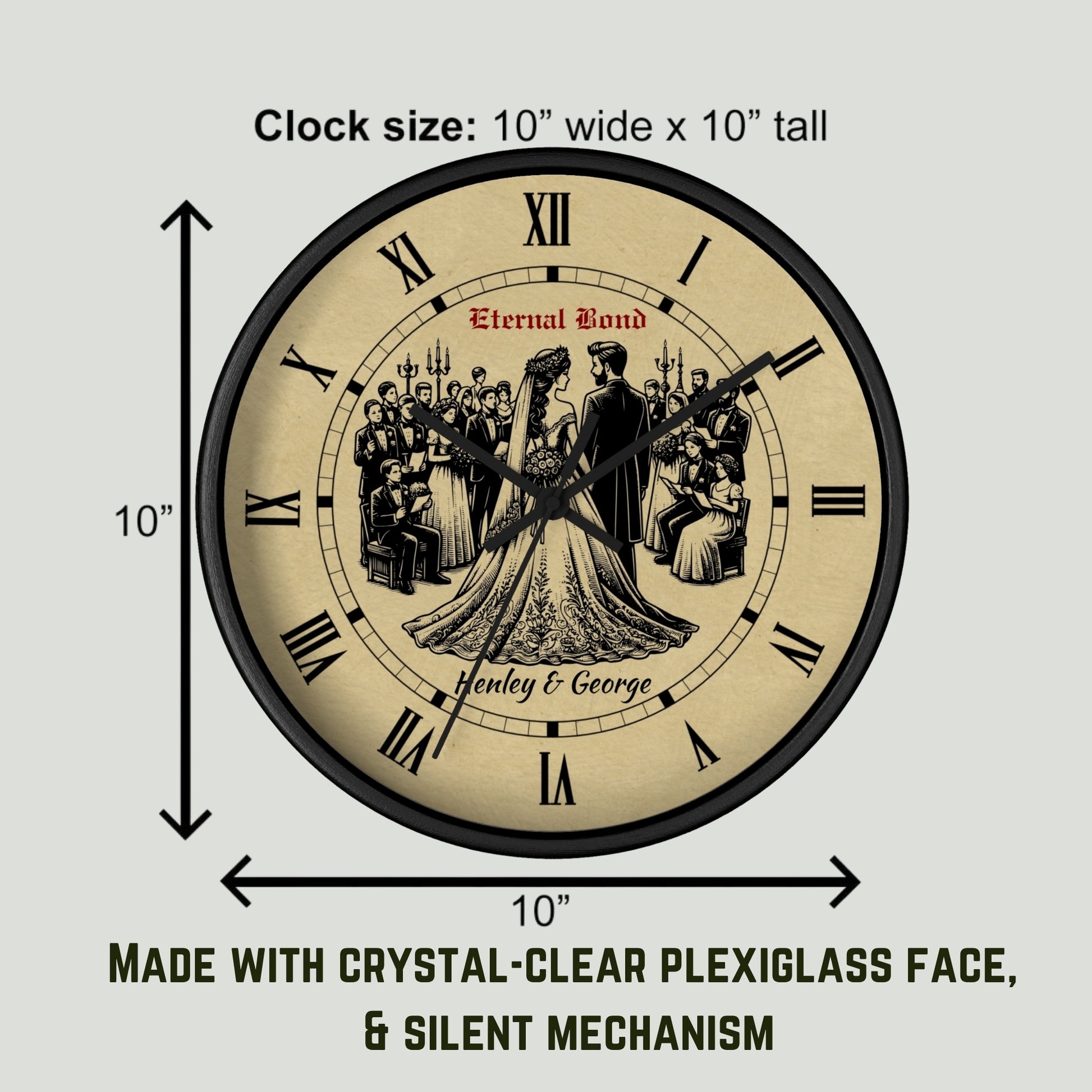 Celebrate love with our Personalized Wedding Wall Clock, featuring a romantic bride & groom design. Custom engraved with names, this elegant wooden clock makes a timeless anniversary gift, newlywed home dรฉcor, or eternal love keepsake. A unique way to cherish your special day forever..