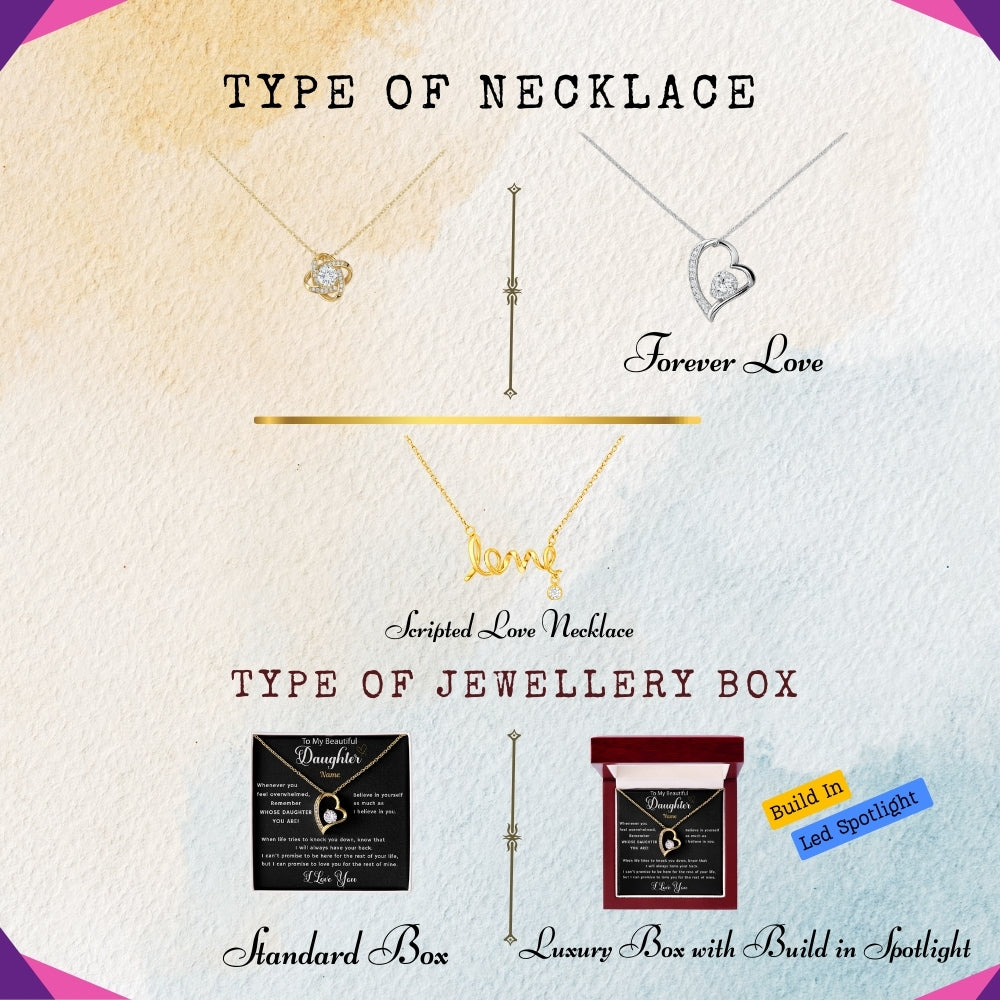 • This beautifully crafted necklace comes with a heartfelt message card,making it the perfect gift for birthdays, special occasions,or simply to remind her how loved she is.