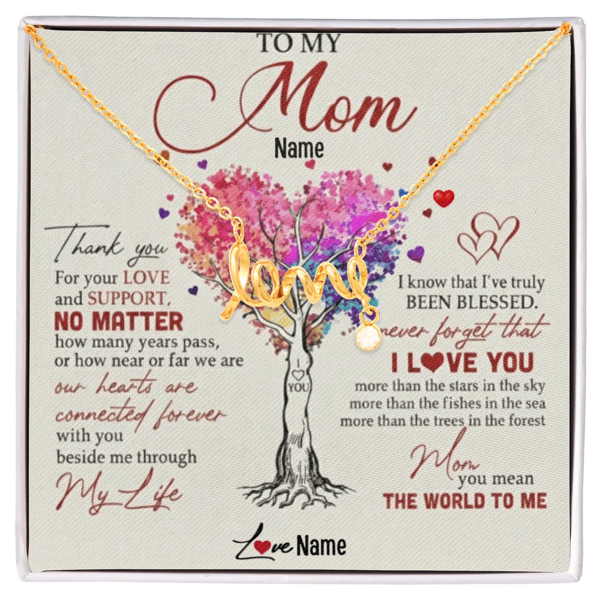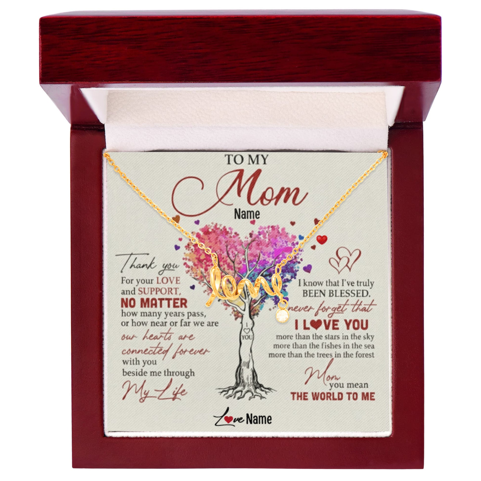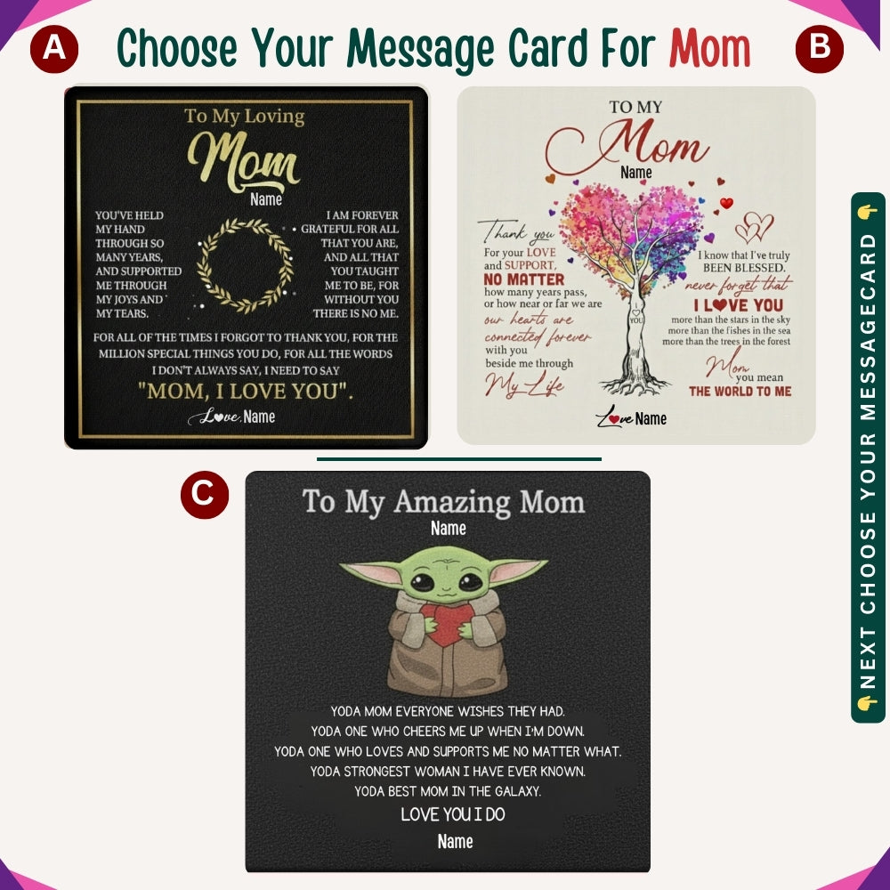 A timeless necklace paired with a heartfelt message — personalized just for your Mom .