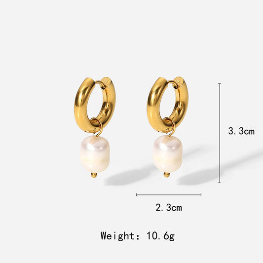 18K gold geometric oval inlaid irregular pearl design exquisite noble earrings