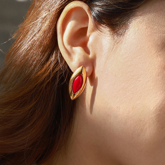 18K gold geometric oval inlaid gemstone design exquisite dazzling earrings