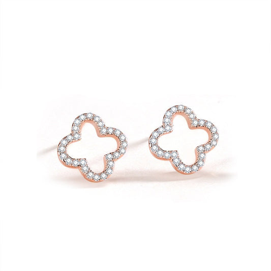 S925 sterling silver forest-style four-leaf clover diamond earrings