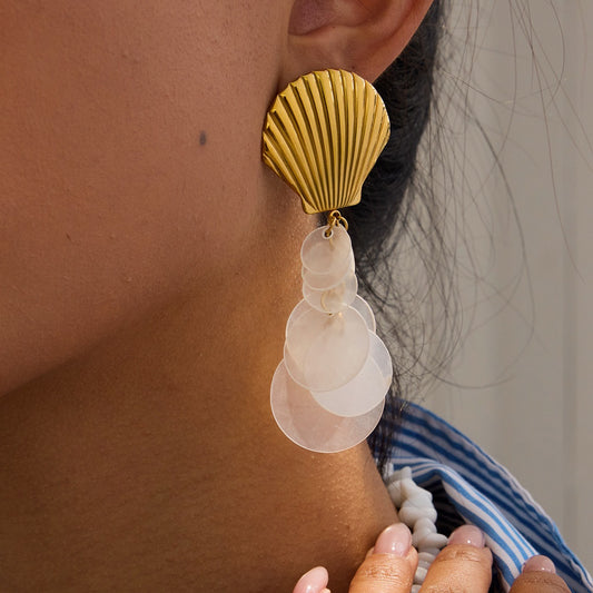 18K gold shell-shaped earrings with round tassel design