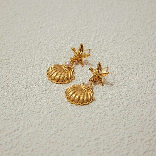 18K gold shells with starfish-shaped design exquisite trendy earrings