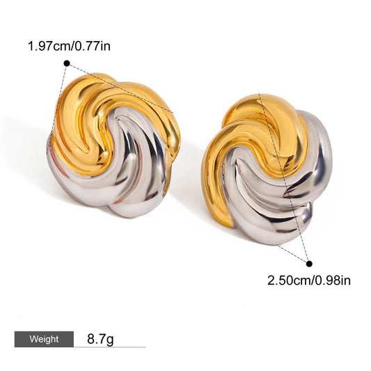 18K gold geometric shape with gold and silver color matching design trendy personality earrings