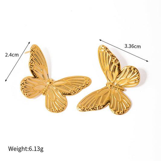 18K gold butterfly-shaped inlaid gemstone design trendy and personalized earrings