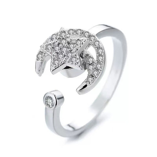 18K gold moon and star with gold and silver color matching design trendy personality open ring