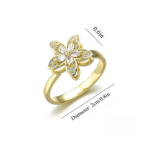 18K gold rotatable zircon flower stress-relief ring.