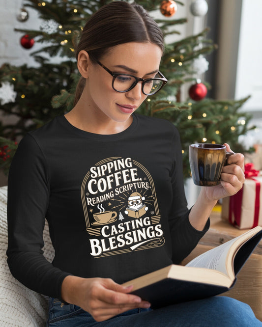 Sipping Scriptures Cotton Long Sleeve Tshirt