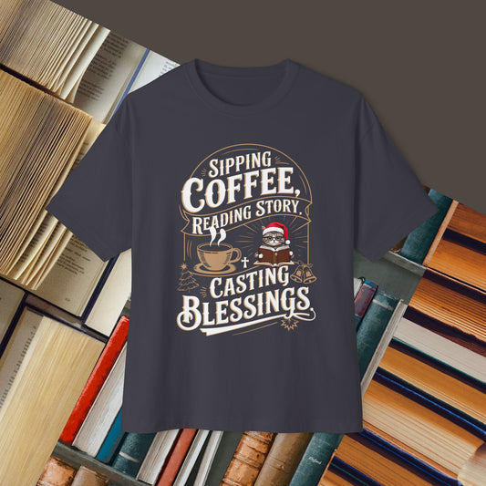 Sipping Coffee Reading Story Unisex Beerlover Oversized Boxy Tshirts