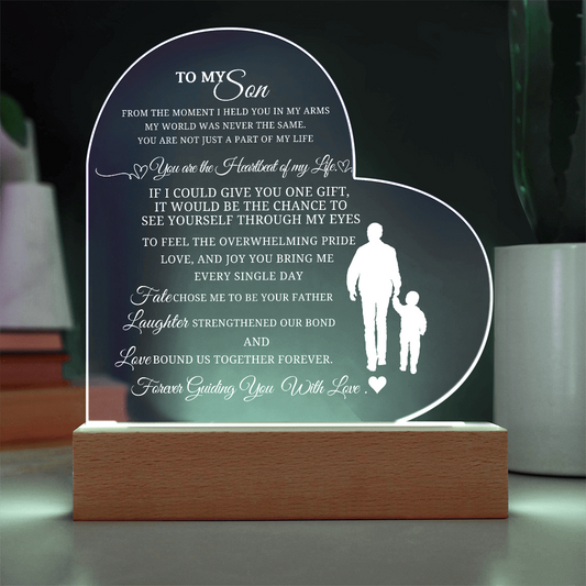 Best Gift From Father To Son. Acrylic Heart Plaque With Led Light Base