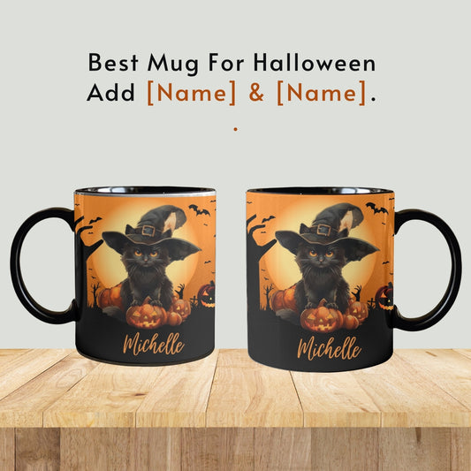 Personalized Black Cat Halloween Mug: Spooky Autumn Gift