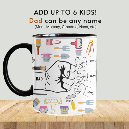 Personalized Dad Mug, Custom Dad Coffee Cup, Dad Gifts with Kids Names, Daddy Birthday Fathers Day Gifts for Dad Present from Children