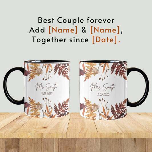 Personalised Wedding gift Mr & Mrs Bride Groom Just Married Gift Mug Greenery Wreath Gift set Ceramic Mug Tea mug coffee Mug Gift mug