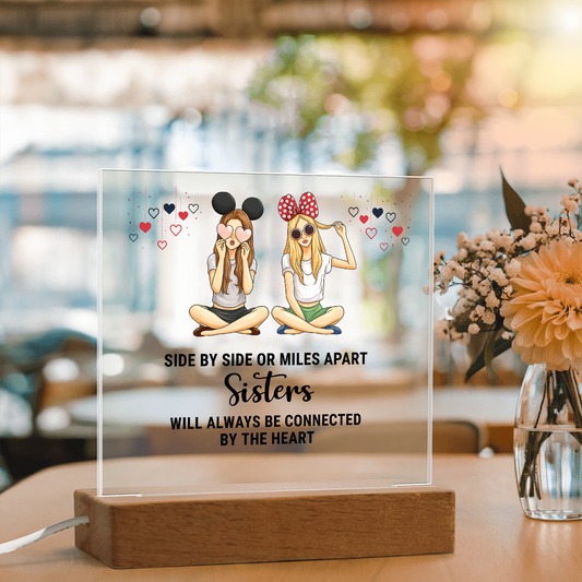 Best Gift For Sister . Acrylic Square Plaque With Led Light Base