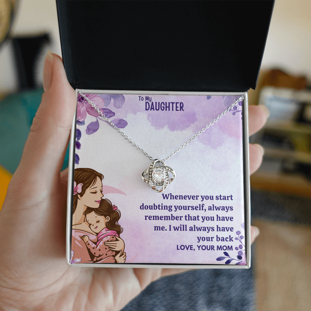 Imagine her reaction receiving this beautiful Love Knot Necklace. Representing an unbreakable bond between two souls, this piece features a beautiful pendant embellished with premium cubic zirconia crystals. Surprise your daughter with this gorgeous gift today!