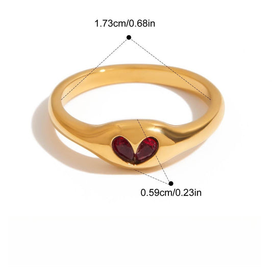 18K Gold Apple Zircon Titanium Steel Ring