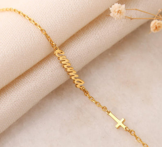 Customized Name and Cross Charm Bracelet