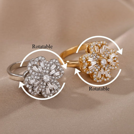 18K gold rotatable zircon flower stress-relief ring.