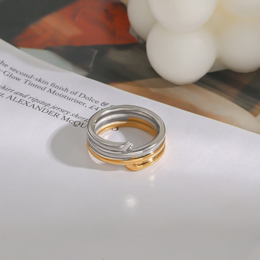 18K gold irregular lines with gold and silver color matching design unique personality ring