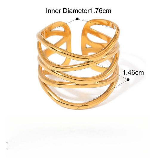 18K gold-plated geometric circular titanium steel ring.