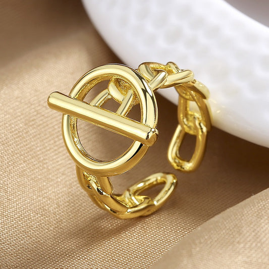18K gold minimalist letter OT clasp ring