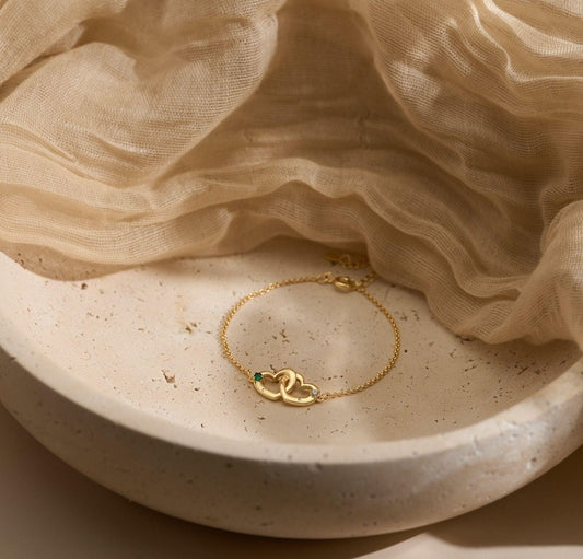 Customized Interlocking Heart Birthstone Bracelet