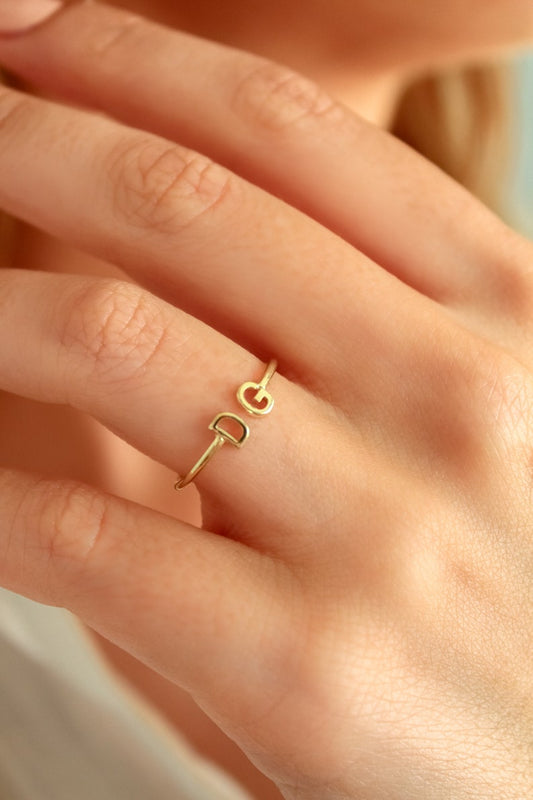 18K gold minimalist letter OT clasp ring